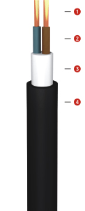1. ILETKEN : SOM VEYA ÖRGÜLÜ BAKIR 2. IZOLE : XLPE 3. DOLGU : HFFR 4. DIS KILIF : HFFR |