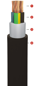 1. ILETKENLI: SOM VEYA ÖRGÜLÜ BAKIR 2. IZOLE : XLPE 3. DOLGU : HFFR 4. DIS KILIF : HFFR |