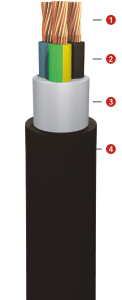 1. ILETKEN : SOM VEYA ÖRGÜLÜ BAKIR 2. IZOLE : XLPE 3. DOLGU : PVC 4. DIS KILIF : PVC |