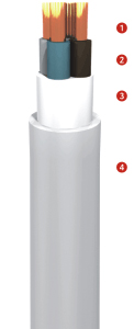 1.ILETKEN : SOM VEYA ÖRGÜLÜ BAKIR 2. IZOLE : PVC 3. DOLGU : PVC 4. DIS KILIF : PVC |