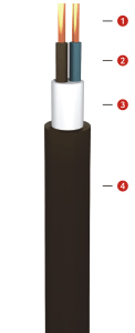 1. ILETKEN : SOM VEYA ÖRGÜLÜ BAKIR 2. IZOLE : PVC 3. DOLGU : PVC 4. DIS KILIF : PVC |
